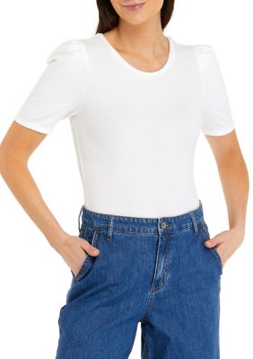 The Kim button-front bodysuit features a stunning ribbed knit construction, short sleeves, and snap button closure at the hem. Bringing an easy-to-layer style to your wardrobe. 50% Viscose, 28% Polyester, 22% Nylon Hand Wash Cold and hang to dry for the best results. Offered in sizes Small - XX-Large Sleeve length: 4.5" Size small measures 25" from shoulder to hem. Model is 5’10” with a 25" waist and 35" hips and is wearing a size Small. | Alloy Apparel Tall Kim Ribbed Bodysuit for Women in White Size L | Nylon {getProduct} $button={Buy Now} $price={$59} $sale={50% Off}